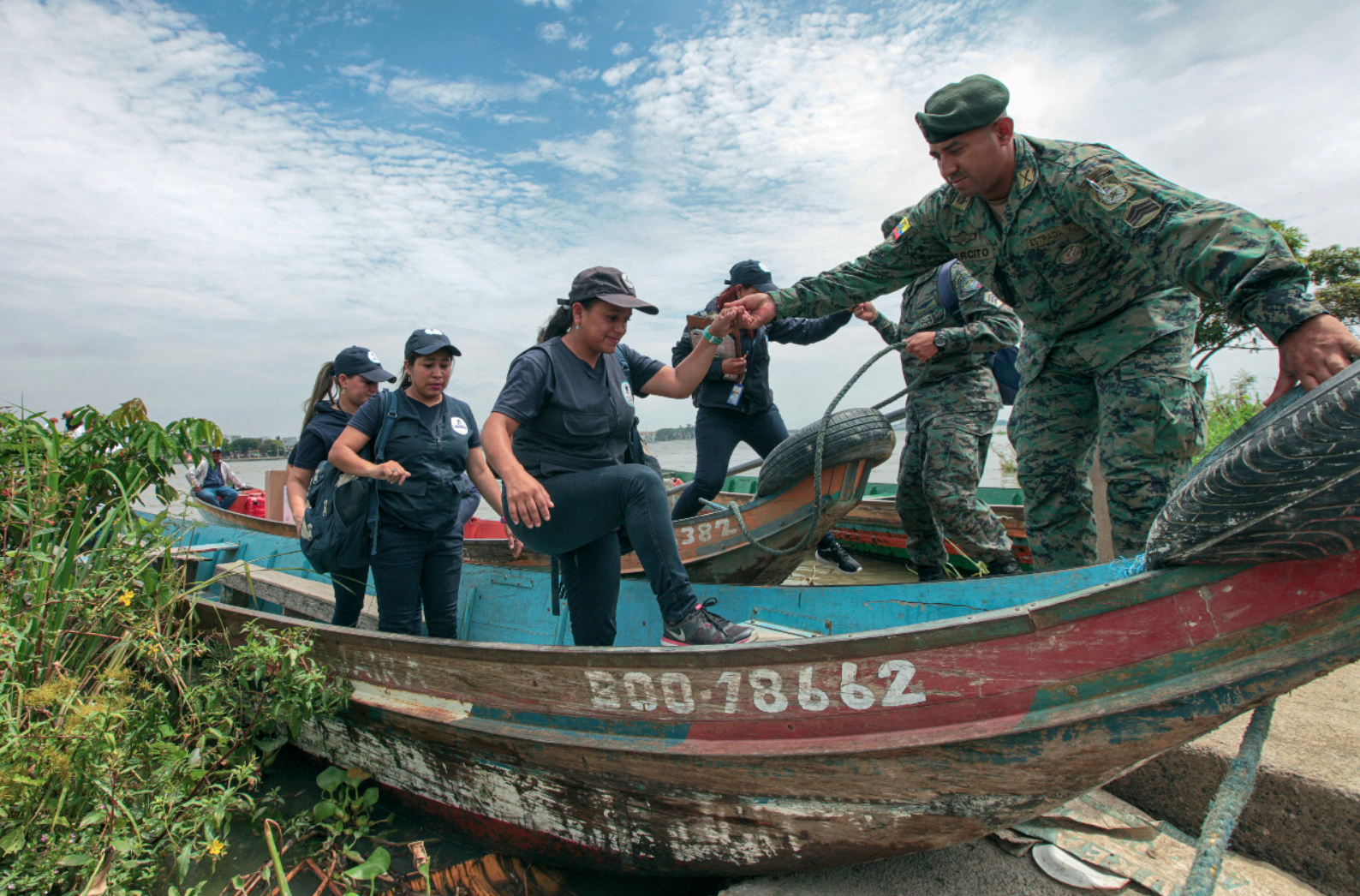 60 brigadistas “Las Manuelas” de la zona 8 se concentraron en el muelle del cantón Samborondón para cruzar en lancha y visitar los recintos ubicados en las orillas del río Babahoyo, y levantar información de las personas con discapacidad y en situación de vulnerabilidad, así como entregar ayudas técnicas.