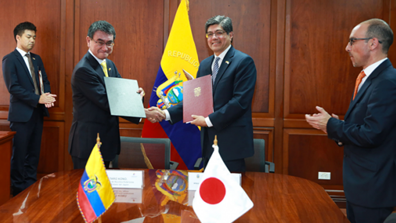 Además, los ministros de Relaciones Exteriores anunciaron que, por primera vez en dos décadas, ‘el Gobierno japonés concederá al Ecuador una cooperación reembolsable, por la suma de 70 millones de dólares, destinados a financiar parcialmente el proyecto de transformación de la matriz energética del país’. La negociación del mencionado acuerdo se encuentra en su etapa final y se espera que sea suscrito en el marco de la visita oficial que cumplirá el presidente Lenín Moreno al Japón, en septiembre próximo.