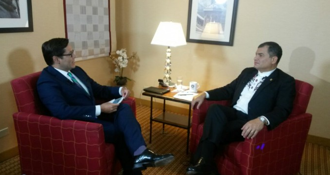 Nueva York (Estados Unidos).- La agenda de trabajo del Presidente de la República, Rafael Correa, en Nueva York se inició con una entrevista a la cadena de noticias Telemundo. Este es el medio de comunicación más grande de los latinos en Estados Unidos.