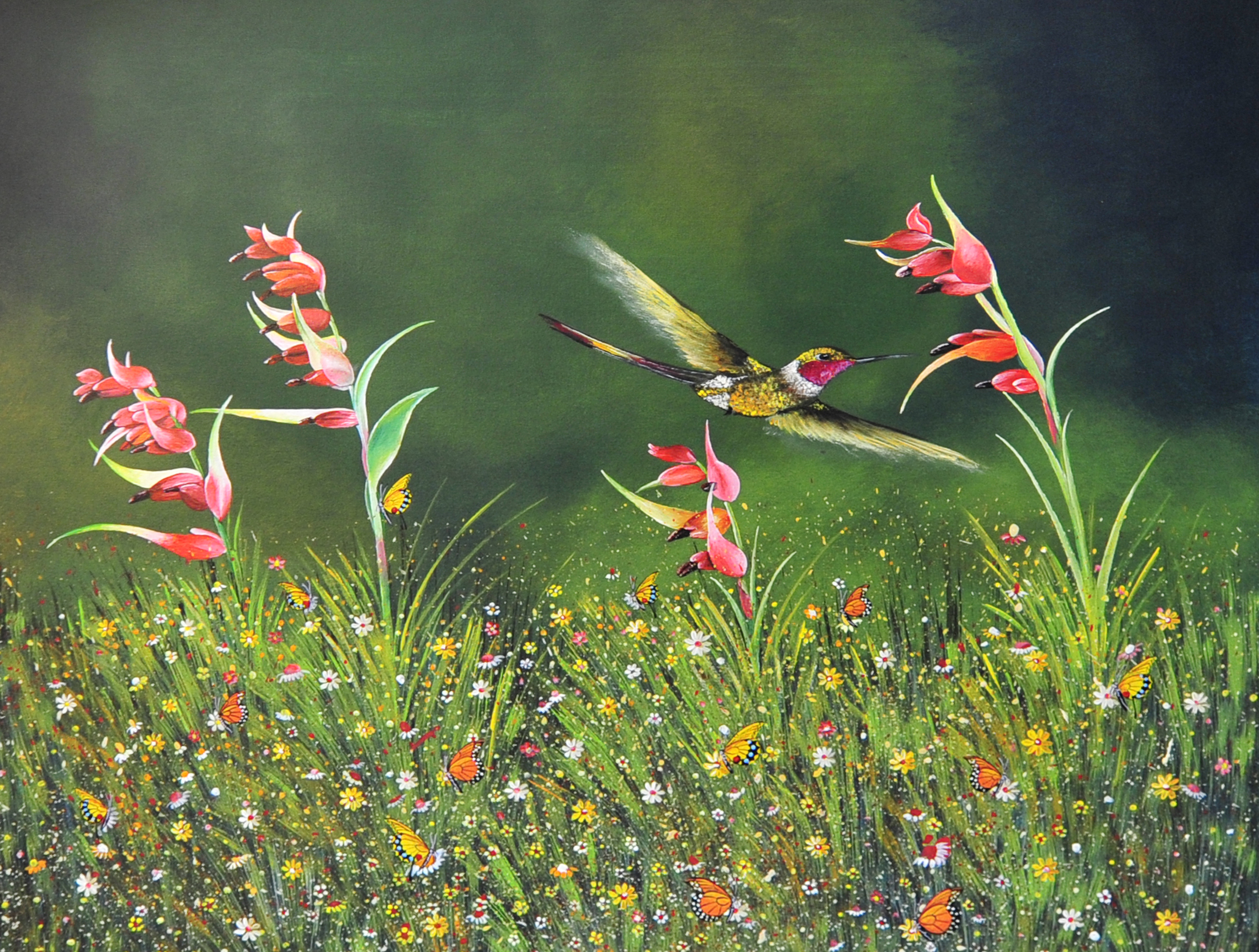 Las pinturas, además de sus tonos, llaman la atención por los detalles que aparecen entre la exuberante naturaleza como mariposas, tucanes, picaflores, aves emblemáticas del país. Los cuadros de Gualle permanecerán hasta el 12 de mayo de 2017.