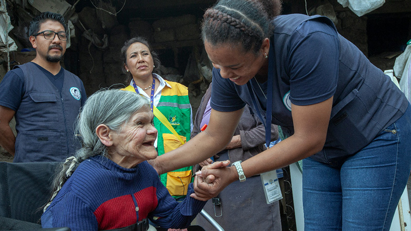 María Chicaiza de 81 años, con el 91% de discapacidad también le entregaron una silla de ruedas, al igual que Laura de 64 años. Ambas recibirán apoyo integral al igual que sus familias.