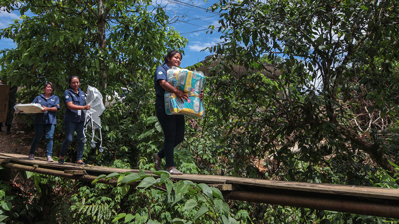 La jornada para las brigadistas “Las Manuelas” de la zona 2 (Napo, Orellana y las parroquias rurales de Pichincha) comenzó muy temprano. Acompañadas de Médicos del Barrio y militares, trasladaron ayudas técnicas en camionetas para entregar a las personas con discapacidad, durante el recorrido que realizaron puerta a puerta en Tena y varias zonas aledañas.