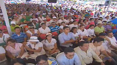 Con un sol canicular, típico de la costa ecuatoriana, los ciudadanos esperaban la llegada del Primer Mandatario, quien arribó a las 10:00 desde la ciudad de Guayaquil. El intenso calor que se siente en este cantón no impidió que los pobladores se dieran cita para escuchar el informe presidencial. Muchos de ellos buscaban para apaciguar los rayos del sol, cubriéndose los rostros con periódicos.