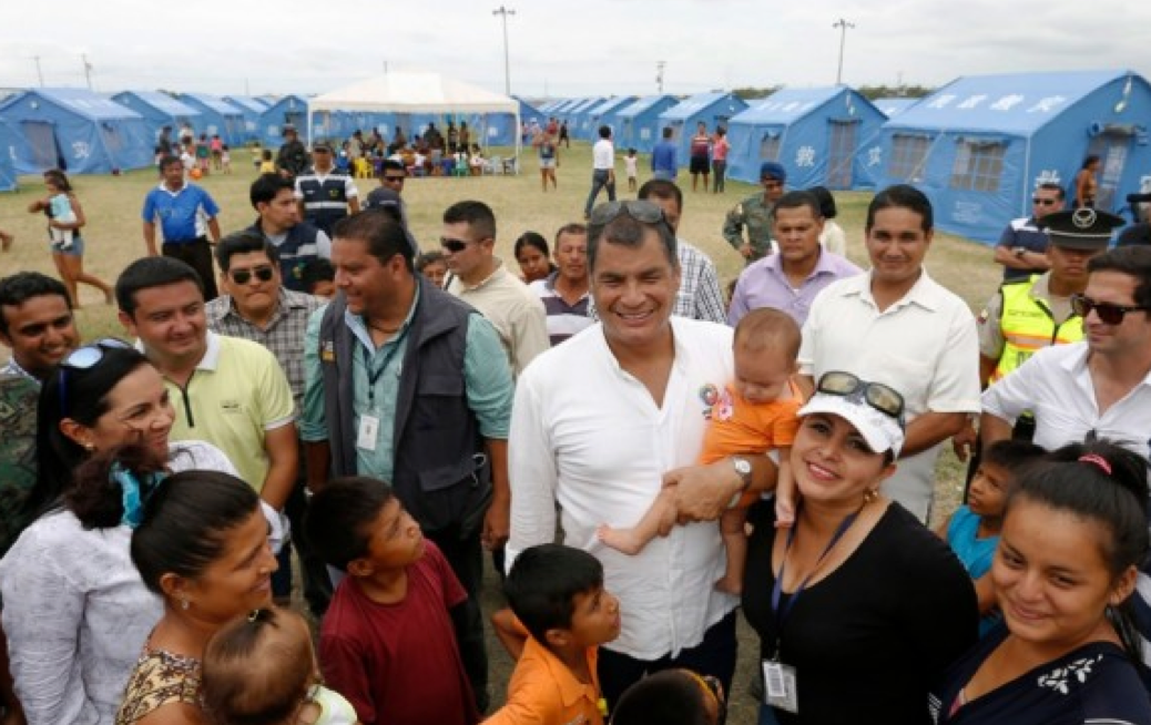 Flavio Alfaro (Manabí).- Cientos de ciudadanos de Flavio Alfaro acompañaron al Presidente de la República, Rafael Correa, en su recorrido por diversos sitios afectados por el terremoto del pasado 16 de abril.