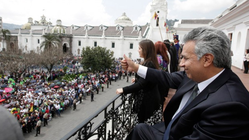 Al final del acto cívico, el Jefe de Estado agradeció el apoyo de los miembros de su Gabinete y disfrutó del momento cultural a cargo de los danzantes de Shell Mera. HP/EL Ciudadano