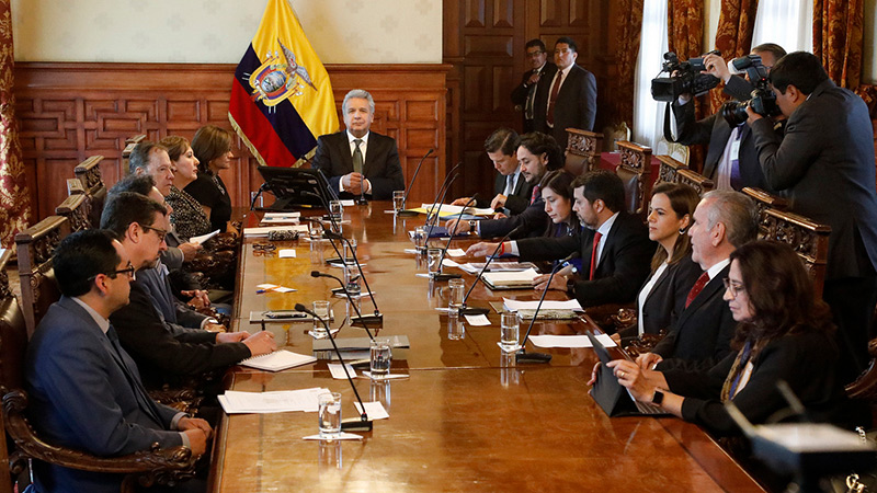 Quito, Pichincha – El presidente de la República, Lenín Moreno, convocó este lunes a los líderes de las distintas funciones del Estado, a una mesa de trabajo en el Palacio de Gobierno. Las autoridades se comprometieron a trabajar conjuntamente para la recuperación de fondos públicos que fueron robados en actos de corrupción.