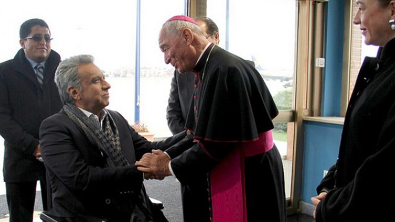 Para recibir al Presidente asistieron el nuncio apostólico Franceso Canalini y la canciller María Fernanda Espinosa. También estuvieron presentes los embajadores de Ecuador ante la Santa Sede y en Italia, José Luis Álvarez y Juan Holguín, respectivamente.