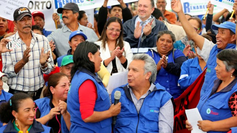 “He venido acá para decirles que tenemos fe en ustedes. Ustedes son parte del futuro que estamos construyendo. Vamos a sacar adelante la empresa de los pequeños recicladores”, expresó Lenín Moreno en medio de los aplausos de los presentes.