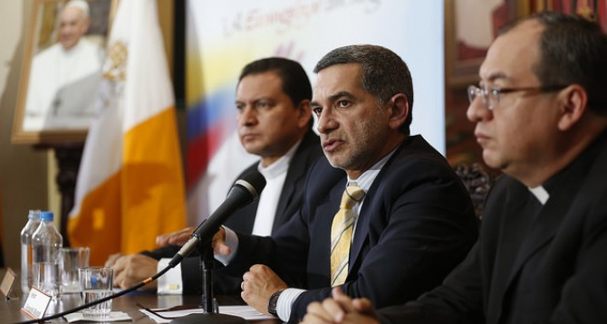 De su parte, monseñor Marco Pérez, vicepresidente de la Conferencia Episcopal Ecuatoriana, afirmó que este convenio interinstitucional busca poner todos los medios posibles para que el Papa Francisco se acerque al pueblo ecuatoriano y que el pueblo pueda escuchar su mensaje de esperanza y, sobre todo, que sienta la cercanía del Santo Padre.