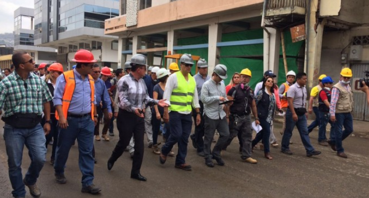 Portoviejo (Manabí).- La Zona Cero de Portoviejo fue recorrida la mañana de este jueves por el Presidente de la República, Rafael Correa, el Secretario Técnico de la Reconstrucción, Carlos Bernal, y el alcalde de la capital manabita, Agustín Casanova. Juntos revisaron el avance de las obras que se ejecutan en el lugar.